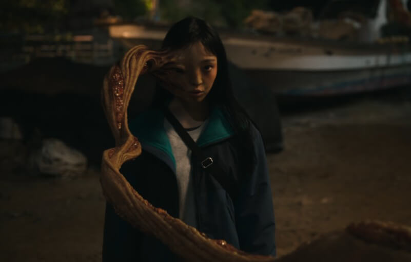 📌 최준경 (이정현) : 경찰청 경비국 위기관리센터 더 그레이 타격팀장인 준경은 기생생물이라면 닥치는 대로 없애려고 합니다. 그녀는 기생생물에 대해서는 다소 과격한 모습이나 행동을 많이 보이는데, 그녀에게는 기생생물을 혐오하는 이유가 있습니다. 그녀의 남편이 기생생물에게 잠식되어 남편을 잃었기 때문입니다. 마트에서 같이 장을 보다가 준경이 잠시 자리를 비운 순간에 기생생물 포자가 떨어져 남편의 몸을 차지했고, 남편의 모습을 한 기생생물은 사람들을 학살하기 시작합니다. 그녀는 남편에게 다가가지만 이미 기생생물에게 잠식된 남편은 준경에게 칼날을 휘둘렀고, 이로 인해 그녀의 귀가 잘려나갑니다. 남편의 모습에 충격을 받지만, 이내 곧 정신을 차리고 사람들을 보호하며, 기생생물체를 정육코너 냉동창고에 가두는 데 성공합니다. 더 이상 남편이 아닌 괴생물체의 모습을 보고 일종의 복수심을 불태우게 되고, 그 이후로 기생생물을 박멸하는 데 힘씁니다.
