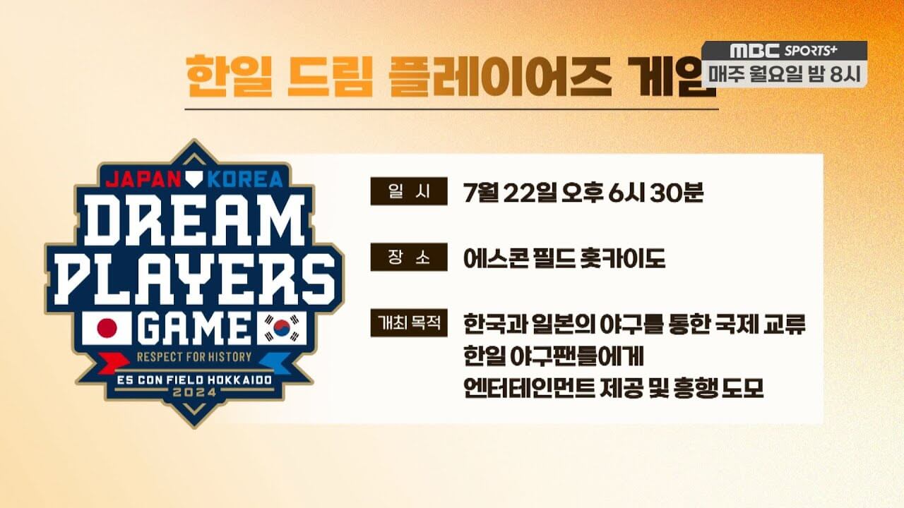2024년 7월 22일 '한일 드림 플레이어즈 게임'이 일본 홋카이도 에스콘필드에서 열립니다. 한국과 일본 프로야구 레전드들이 모여 특별한 경기를 펼치는 이번 이벤트는 야구팬들의 많은 기대를 모으고 있습니다. 두 나라의 레전드들이 맞붙는 친선 경기를 통해 야구팬들이 오랜만에 레전드들의 멋진 플레이를 볼 수 있는 '한일 드림 플레이어즈 게임' 경기 일정, 중계, 선수 명단, 그리고 시청 방법까지 알아보도록 하겠습니다.